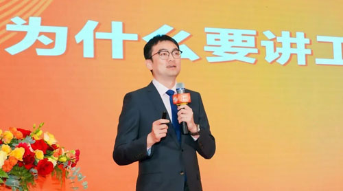 ▲烟台新时代健康产业日化有限公司技术开发部主任于建伟带来《工匠精神——实力铸就健康生活》课程