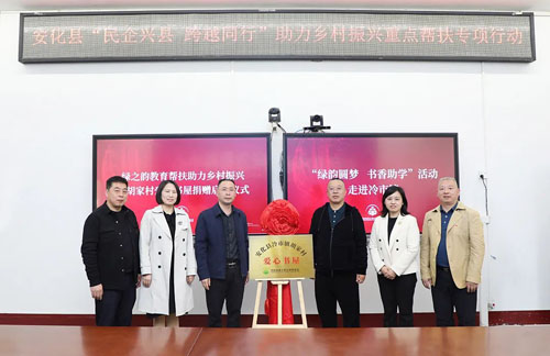 为积极响应湖南省“民企兴县 跨越同行”助力乡村振兴重点帮扶县专项行动,2023年3月31日,绿之韵集团通过湖南省绿之韵公益基金会“书香助学项目”捐赠100万元爱心款项,用于安化县冷市镇胡家村爱心书屋建设及在安化大桥学校设立“绿韵圆梦奖学金”,支持乡村振兴文化建设和教育事业发展。