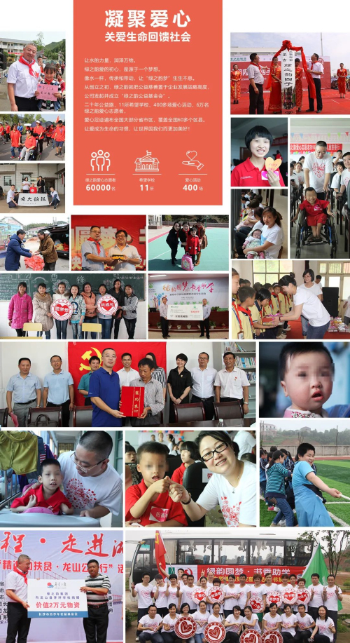 20年公益路,绿之韵捐建了11所绿之韵希望学校,与10余所大学携手树人行动,帮扶10000余名困难学子与家庭;400多场爱心活动,60000名绿之韵爱心志愿者,足迹遍布湖南、湖北、福建、广东、广西、安徽、四川、内蒙古、河北、山东、黑龙江、吉林、辽宁等全国大部分省市区,覆盖全国60多个区县,改变无数人的命运。未来,在经开区关工委和基金会党组织的带领下,绿之韵将不断探索关心下一代的新思路、新方式和新途径,以实际行动为下一代健康成长贡献一份力量,共筑社会和谐友好!