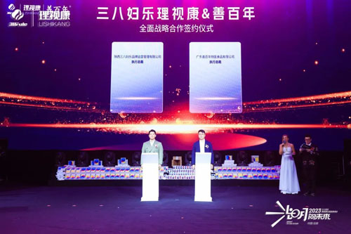 随后,三八妇乐理视康与善百年正式宣布达成全面战略合作,中国保健协会副理事长、三八妇乐品牌运营管理有限公司执行总裁徐伟明与广东善百年特医食品有限公司执行总裁陈凯先生为代表,共同签署战略合作协议,暨南大学善百年先端食品研究院院长Martin Banwell,暨南大学蓝平博士,北京百奥森医药科技有限公司董事长刘冬洋,赋商会创始人郑九洲、管鹏,广东善百年特医食品有限公司销售总监吴迪等作为观礼嘉宾,见证了这一重要时刻。未来,双方将不断深化合作、双向赋能,打造大健康产业发展新优势,共同推动产业高质量发展。