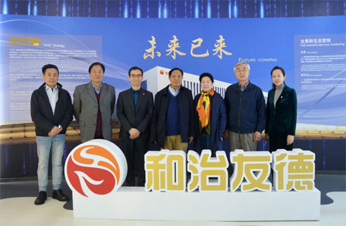 阳春布德泽,万物生光辉。2023年4月13日,在充满希望、生机勃勃的美好春光里,外交部原副部长、丝路金桥国际智库名誉理事长吉佩定,天津市第十届政协副主席、天津市慈善协会原会长曹秀荣,外交部原发言人、中国驻外大使、中国太平洋经济合作全国委员会原会长唐国强,外交部干部司原司长、中国驻外大使、外交学会原副会长兼秘书长刘玉和,丝路书画院办公室主任王滔一行莅临天津和治友德全球运营总部参观指导。韩金明董事长、郅群副总裁热情接待了来宾一行。
