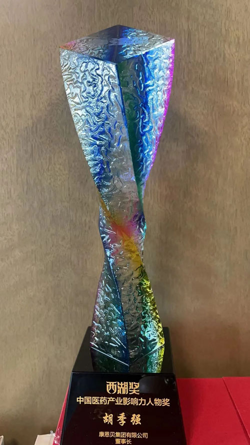 公司董事长胡季强耕耘医药行业数十载,带领全体康恩贝人励精图治、奋力拼搏,公司规模效益和发展质量稳步增长;同时积极履行社会责任,实现了企业效益和社会效益双赢,获得大会主委会颁发的“西湖奖•中国医药产业影响力人物”奖。