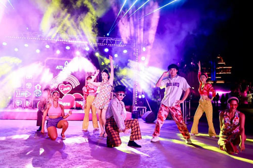 在亚特兰蒂斯水世界,烟花秀场热情绽放,主播“小尚”在线直播,带我们共同尖叫!