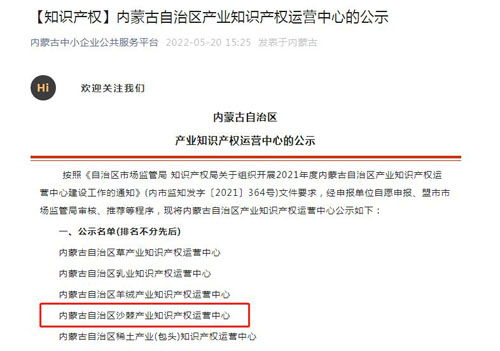内蒙古沙棘产业知识产权运营中心是内蒙古自治区首批5家产业知识产权运营中心之一,在沙棘行业中更是仅此一家。