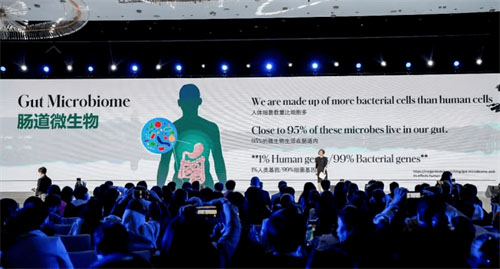 发布会现场,来自杜邦公司长期从事微生物及生物催化方面研究的吕腾飞,就益生菌和人体健康的关系以图文并茂的方式进行科普解读,他说到:人体微生物共约500-1000种,总数量高达100万亿,比人体细胞数还要多10倍。微生物广泛分布在人体的皮肤、口腔、肠道、生殖器等。肠道是体内微生物主要的寄居地,超过50%以上位于肠道。人类所需要的营养,100%是由胃肠道吸收,人体的垃圾毒素,90%从肠道排出,人身体的免疫力70%来自肠道。人体微生物与健康息息相关,影响到生长发育,疾病、抗病、免疫功能等等,对感冒后的恢复、缓解便秘都有帮助。