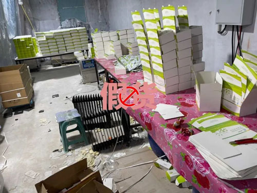 侦查取证后,当地公安部门及时执行收网行动,在2023年2月下旬某晚调动警力40余名,对犯罪嫌疑人进行抓捕。当晚共抓捕犯罪嫌疑人8人,并查获假货仓库2处。次日早上查获生产车间及包材和原材料库1处,物流发货库1处,高档精品库1处。