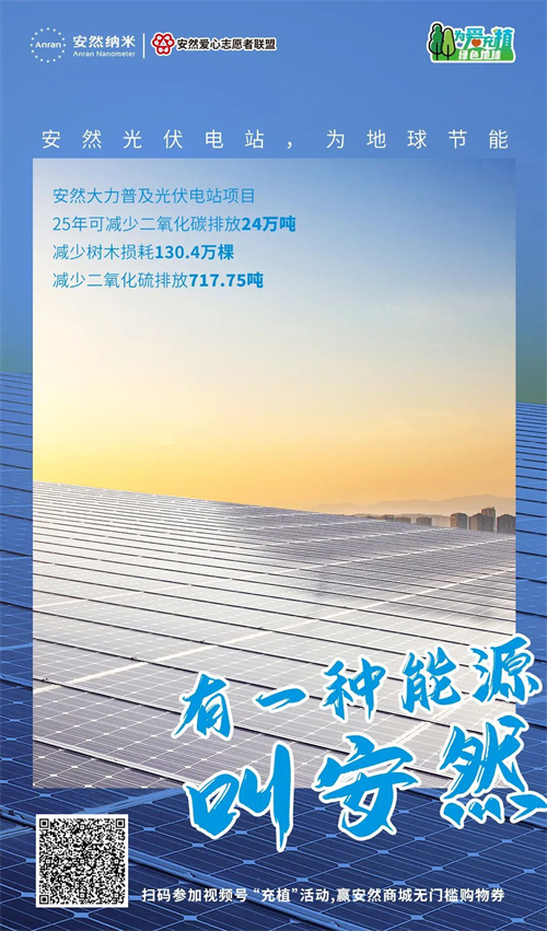安然光伏电站项目,25年可减少CO?排放2.4万吨,减少树木损耗130.4万棵,减少二氧化硫排放717.75吨。