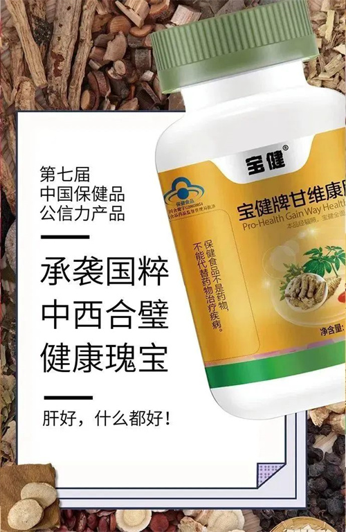 比如宝健甘维康,是由国家食品药品监督管理局批准的保健食品(即蓝帽子认证),以中医药食同源、君臣佐使理念,精选传统养生食材,具有"对胃黏膜有辅助保护功能、对化学性肝损伤有辅助保护功能"的保健功能,曾荣获“最受消费者欢迎产品”、公信力产品奖等荣誉。