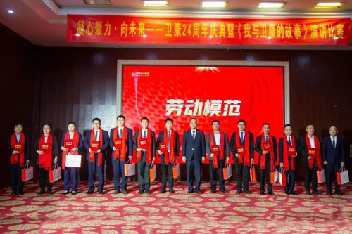 为表彰先进,树立榜样,激励全体职工的积极性和创造性,值此集团成立24周年适逢五一劳动节之际,授予李化健、王宗龙等人卫康集团劳动模范称号,此次大会上对劳模获得者进行了进行了隆重表彰。在卫康大健康事业恢弘的航道上,他们在劈波斩浪中迈步新征程、在披荆斩棘中开辟新天地、在攻坚克难中创造新业绩,他们在星辰大海的征途上,持续闪耀卫康人的荣光,创造出生命的波澜壮阔。