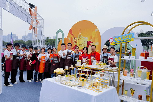 休闲洽谈区展出了公司产品DIY各式创意点心和饮品,吸引了主办方和媒体记者、市场伙伴和市民驻足参观、拍照、品尝。