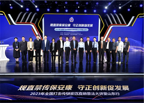 2023年5月9日,由市场监管总局规范直销与打击传销办公室主办,山东省市场监管局、山东省公安厅、中国消费者报社承办的全国打击传销规范直销普法大讲堂山东行活动在济南市举办,本次活动主题为“规直禁传保安康,守正创新促发展”。市场监管总局价监竞争局、公安部经侦局有关负责同志参加。天津和治友德制药有限公司公共事务中心副总经理孟凡玲女士代表公司参加本次行业会议。