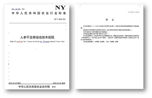人参干细胞技术行业标准——《人参不定根组培技术规程》标准已通过国家农业农村部评审且正式立项。
