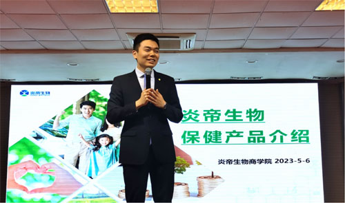 培训经理胡博闻作《炎帝五款保健产品》课程介绍,他从产品专利权、实验数据、研发机构、作用机理等角度,全面阐述五款蓝帽子保健品的来历及背景。同时通过使用案例分享,充分诠释了免疫产品强强组合所能达成的最佳效果。