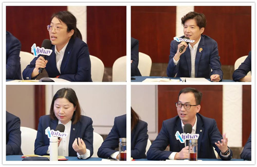 安惠公司企划部总监唐懿,教育总监、商学院院长郑晓耘,总经理助理陈杰,团委书记陈骏骅,安惠药用真菌科学研究所所长吴伟杰,客服部主任刘迪,总经理助理、市场部总监郑林国,分别就安惠品牌宣传片、工业旅游、研学实践、菌物健康百家讲堂、青年特训班以及市场相关工作展开沟通交流。
