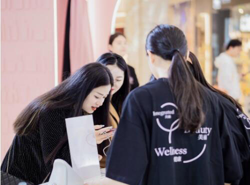 “快闪店被打造成承载美丽与健康的银行,金库里是‘美丽健康共融的财富’。清新温柔的色彩,给人夏风拂面的自然舒适感。粉色是美丽区,在这里能了解如新创新研发的ageLOC科技;而蓝色所在的健康区,TRME健康体型管理方案给人不一样的健康体型管理新思路,塑造科学有效的健康减脂观念。据说还可以感受S3生物光子扫描仪,30秒就能轻松了解自己的皮肤类胡萝卜素指标,实时了解身体营养状况所需,我赶紧来试一下。”