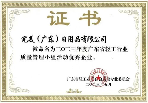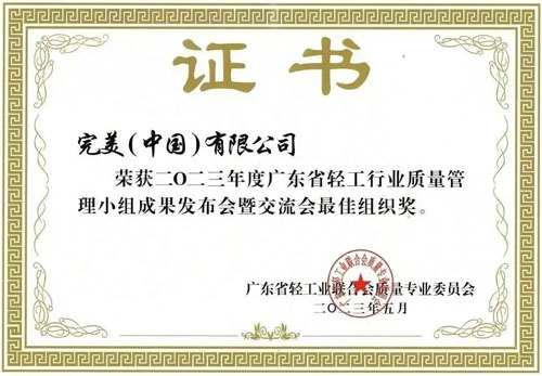 近日,由广东省轻工业联合会主办的2023年度广东省轻工业优秀质量管理小组活动成果发布暨交流会在广东台山举行。完美公司代表团以优异的表现和实力,获得4项金奖,3项银奖,3项“质量信得过班组”称号。完美(中国)有限公司荣获“2023年度广东省轻工行业质量管理小组成果发布会暨交流会最佳组织奖”;完美(广东)日用品有限公司被评为“2023年度广东省轻工行业质量管理小组活动优秀企业”。