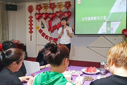 活动从观看感人的母亲节短视频拉开序幕。分公司讲师以女性健康为主题,从不同年龄女性的生理、心理特征进行分析,讲述呵护母亲健康的方法,并通过智能耳穴仪、健康镜为在场女性开展健康监测服务。