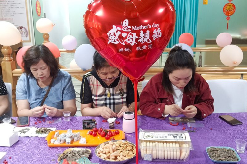 活动中,大家亲自动手为妈妈制作相思豆手串,并为妈妈献上花朵与祝福。大家纷纷表示要将这份爱传递下去,让更多人关爱女性健康。