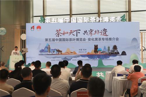 半部黑茶史,非遗见真章。5月21日下午,第五届中国国际茶叶博览会·安化黑茶专场推介会在杭州国际博览中心3C馆茶文化活动区隆重举行。