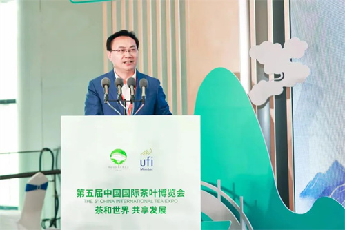 安化县委副书记、县长潘文剑致欢迎辞,娓娓讲述了安化黑茶厚重的人文历史底蕴、得天独厚的自然生态之美和产业发展的资源禀赋优势。潘文剑真诚地表示,希望借此机会畅叙友谊、深化交流,热忱地欢迎大家多到“神韵安化”来品茶赏茶、投资兴业,共谋发展之路。