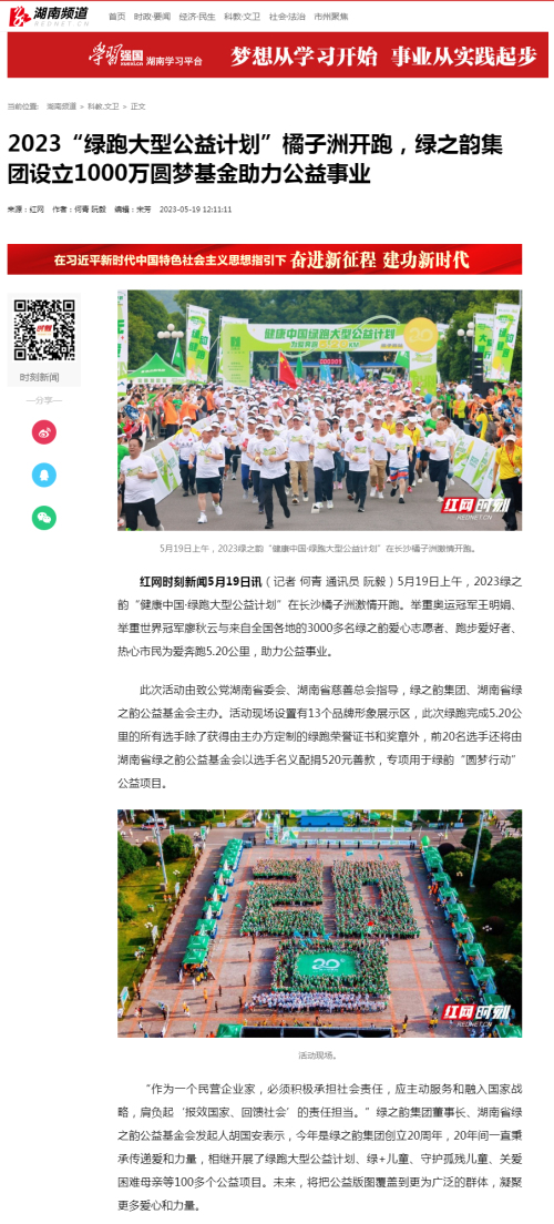 - 绿之韵捐20万支持长沙县高桥镇红色文化传承