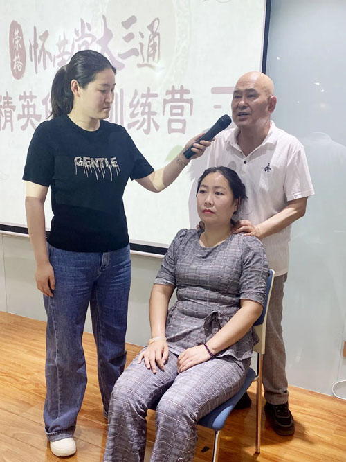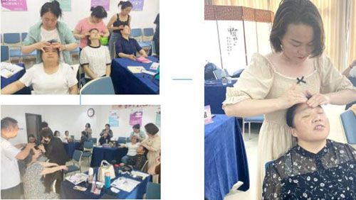 在实操演练环节,伙伴们俩俩一组,通过一起相互学习交流,伙伴们很快就学会了快速取穴、找经络的方法。