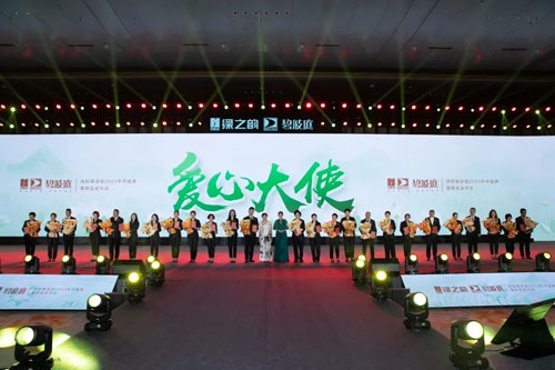 ▲绿之韵集团总裁 劳嘉、碧波庭创始人 李水莲 为爱心大使获得者 颁奖