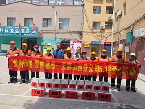5月15日,山西分公司慰问太原万柏林区环卫工人,外事经理宋鹏、员工代表范文霞与勤劳奋战在一线的“马路天使”共同见证爱心善举。