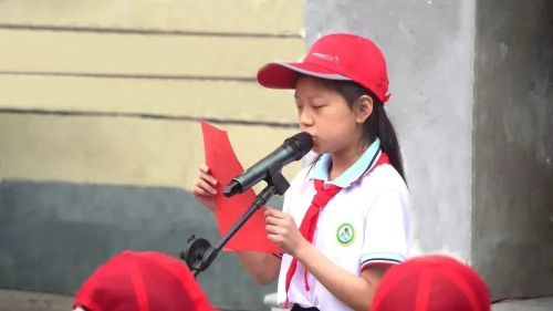 少先队员代表徐笑晴发言,她表示要将卫康的颗颗爱心化为勤奋学习的不竭动力,用优异成绩来报答和感谢卫康对他们的无私关爱,并立志将卫康的这份关爱之心、温暖之举传承下去,让爱延续,让人间温暖常在。