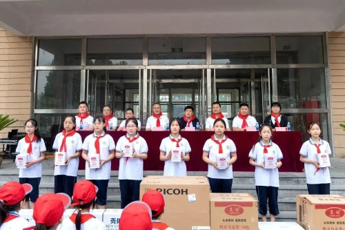 在捐赠仪式上,卫康为孝爱古城小学捐赠了速印机、彩色打印机、学生用品等。