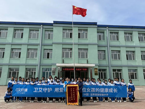 艾多美志愿者们了解到以上情况,为此奉献爱心,向这所学校的全体女童捐赠了卫生用品,用“艾”关怀她们成长。