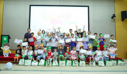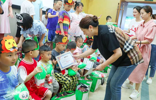 绿之韵集团董事、总裁劳嘉为赢得比赛的孩子们发放奖品