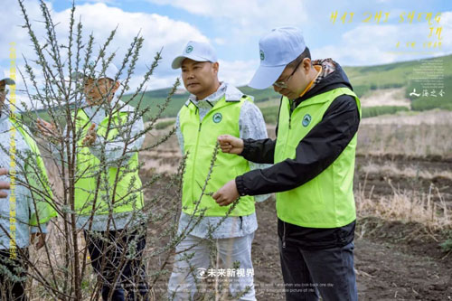在公益种植活动结束后,海之圣公司领航人刘家齐博士带领公司高管团队及伙伴视察了海之圣公司绿色生态沙棘原料基地示范园建设情况,让大家进一步了解沙棘产业助力乡村振兴的建设进展。