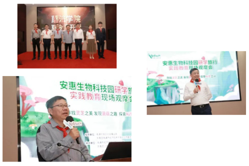 在大家的热情掌声中,各位领导嘉宾共同点亮了“蘑法学院”夏令营开营大屏;活动最后,南通开发区社会事业局副局长唐进华和安惠公司董事长陈惠都分别做了重要讲话,他们叮嘱少年儿童要做到将“学习”与“游玩”融为一体,做到“寓学于游”“寓教于乐”“寓修于休”。多多走进研学旅行课堂,寻找灵芝之美、发现菌菇之趣,探索科学之谜。