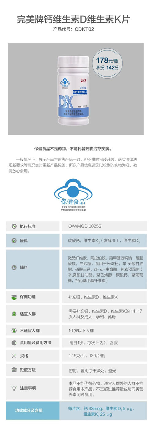 精准补钙 完美牌钙维生素D维生素K片上市