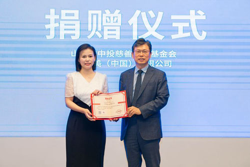 捐赠仪式上,山东省中投慈善公益基金会向艾多美回赠荣誉证书。双方共同表示,未来将在更多领域建立长期紧密的公益合作,帮助到更多需要帮助的人。