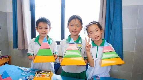 课堂活动由无限极公益联盟志愿者协会主持。课堂中,志愿者通过动画视频播放及讲解、有奖问答游戏互动等形式,带领同学们学习营养金字塔和维生素家族,帮助同学们认识人体营养结构,关注均衡饮食合理搭配,深入了解不同维生素对健康的作用;带领同学们制作手工营养金字塔,既巩固了同学们对营养金字塔的认识,又锻炼了同学们的动手动脑能力。