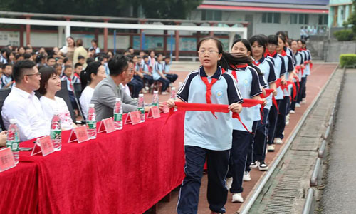 仪式开始前,领导嘉宾实地参观了学校基础设施建设及办学条件,3名不同年级的学生代表作为小小讲解员,从学校文化长廊到校史长廊条理清晰地为嘉宾们讲述大桥学校办学历史和办学特色。活动伊始,少先队员代表为到场嘉宾佩戴红领巾,行队礼,用最质朴的行动向所有爱心人士表达最真挚的感谢。