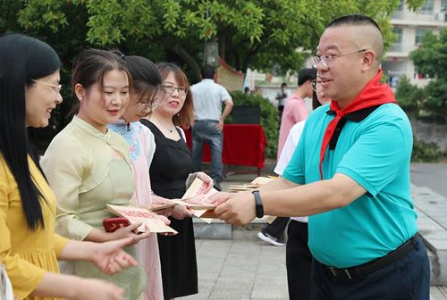 活动最后,安化县人大常委会副主任李艳云讲话。她首先代表安化县委、县政府向胡国安董事长及公益团队表示崇高的敬意和衷心的感谢。她表示,捐资助学、尊师重教是社会的伟统美德。胡国安董事长作为从安化走出去的优秀知名企业家代表,是慈善大爱的楷模。长期以来情系家乡,在爱心奉献、回报桑梓的公益道路上一直不遗余力、竭尽所能,从建桥修路、精准扶贫到脱贫攻坚,从产业帮扶、爱心助学到乡村振兴等无不体现了一位企业家高度的社会责任感和使命感。此次“绿韵圆梦奖教奖学金”的颁发,也必将激发全体教师更大的工作热情,更好地授业解惑,爱岗敬业,教书育人;激励全体学生更加努力拼搏,立志成才,奋发向上。必将影响和带动社会各界来关注、支持家乡的教育工作,关注、支持家乡的发展和建设。她希望,同学们继续保持品学兼优的品行,树立远大理想,刻苦学习,努力奋斗;常怀感恩之心去学习和工作,常念感激之情去做事和做人,牢记绿之韵集团、社会、国家的教育和帮助,用实际行动去回馈社会、感恩社会;希望“绿韵圆梦”奖教奖学金规范管理,科学运作,让大桥学校更多优秀的教师和学生得到嘉奖,得到鼓励,最大限度地发挥奖教奖学的效应。她呼吁,希望有更多的社会爱心人士像胡国安董事长这样,以实际行动关心支持教育事业的发展,关爱激励青少年的成长。