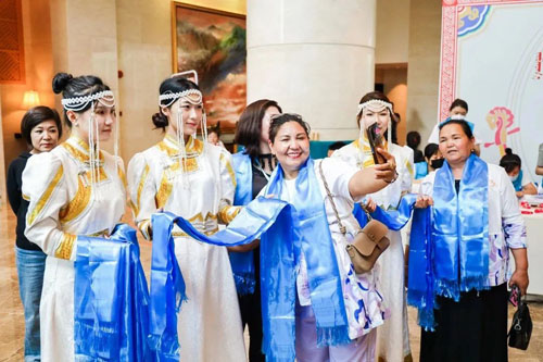 报到处,身着民族服饰的蒙古姑娘为创业合伙人献上尊敬的哈达,对大家的到来表示热烈的欢迎,创业合伙人纷纷拍照记录下这一刻,并在朋友圈分享自己的喜悦。内蒙古之行由此正式开启。
