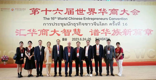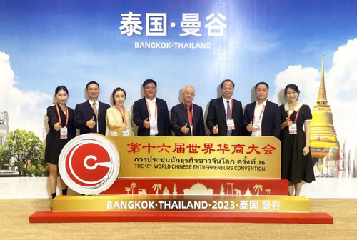 6月24日至26日,第十六届世界华商大会在泰国曼谷举行,来自全球50多个国家的3000多名华商、200多家世界知名企业代表参加。广东省侨商会会长、完美公司董事长古润金率领广东省侨商会代表团一行出席大会活动。