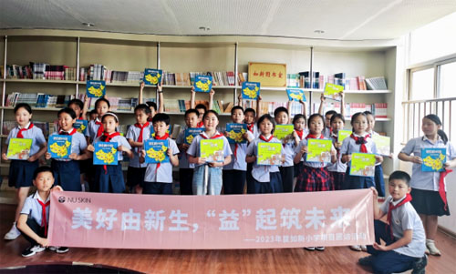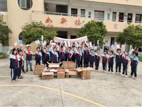 (如新小学的受助儿童收了如新中国捐赠的物资)