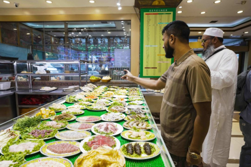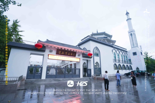 清真寺白墙、绿瓦、金色穹顶,交相辉映、海天互接,显得宏伟而神圣,是青岛众多宗教建筑里一道靓丽的风景线。海之圣公司尊重全球伙伴的宗教信仰和文化习俗,在25日当天特别安排了参观青岛清真寺的行程,并宴请伙伴品味清真餐。