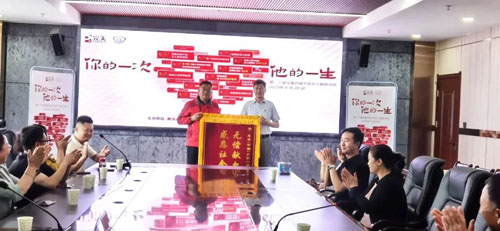 血液中心颁发了“无偿献血践于行 感恩社会始于心”的荣誉锦旗。期间以有奖抢答的形式开展了“无偿献血小知识”的普及,在场的完美人踊跃参加。