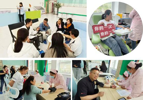 在血液中心老师的带领下,进行了“一袋血的生命旅程”参观活动,并在血液采集、保存等环节讲解了专业知识。随后,各位完美家人积极地进行了血液检测并献血。