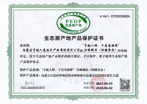 - 宇航人两款沙棘产品斩获内蒙古 “名优特”