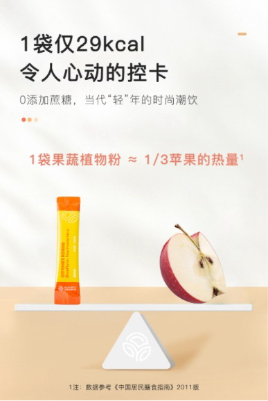 自然阳光赋力果蔬植物粉固体饮料更充分考虑了体重管理阶段消费者的需求,产品采用0添加蔗糖配方,每包的热量仅为29大卡,只有一个苹果1/3的热量,在补充植物营养的同时,不担心为身体增加额外负担,可以更加愉快地健康生活。