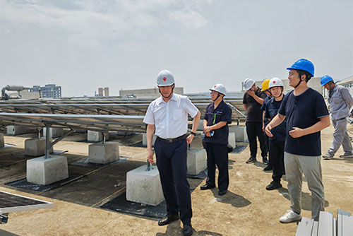 烟台健康公司与中节能太阳能股份公司于2022年底签订了合作开发合同,经双方努力,该项目陆续完成了发改委备案、国家电网并网接入方案审批、电站建设屋面载荷核算、电站施工图纸设计会审、光伏组件逆变器等主材采购到货等准备工作,于2023年5月29日正式进厂施工。在新时代集团领导的大力支持和精心指导下,经过多方组织安排施工,项目于6月30日顺利建成,成功并网发电。