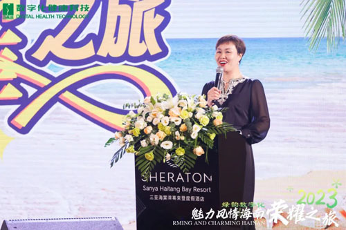 会议伊始,公司第一营销中心总经理李苹发表精彩致辞。她阐述了公司深耕大健康事业,助力健康中国的初心,以及所取得的成就,并感谢每位市场伙伴的同心同德、相知相守。她祝愿更多的人,能够在绿韵数字化的事业平台上实现旅行梦想,开启华彩人生!