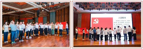 党课期间,在完美公司党委副书记王天庆的带领下,完美公司党员代表们庄严举起右手,面对党旗重温入党誓词,抒发对党的忠诚与热爱。“我志愿加入中国共产党,拥护党的纲领,遵守党的章程,履行党员义务……”在党员代表们庄严肃穆、铿锵有力的宣誓声中,共同致敬伟人,重温入党初心。